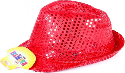 Maak je feest compleet met deze stijlvolle rode discohoed! De hoed is bedekt met pailletten en knippert in kleuren met drie snelheden zodra je hem aanzet. Bediening via een onopvallende zijknop en 3 LR44-batterijen zijn inbegrepen.