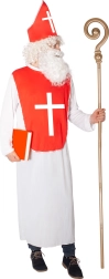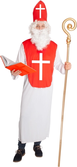 Dit Sint-Nicolaaskostuum voor volwassenen bestaat uit een lang wit gewaad (ca. 145 cm vanaf de schouders) en een rood borstschild met een opvallend wit kruis. Inclusief muts met klittenbandsluiting voor snel en stevig vastmaken. Dankzij de universele snit zit het kostuum comfortabel en is het makkelijk te layeren.