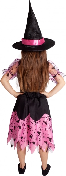 Schattig heksen-kostuum voor meisjes in roze-zwart voor lengte 105–116 cm. Inclusief hoed. Ideaal voor carnaval en Halloween – comfortabel, speels en opvallend.