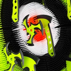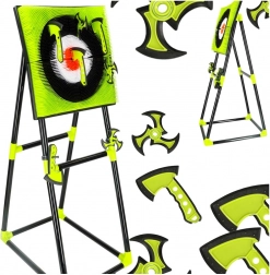 Leuke en veilige set voor het werpen op een doelwit met zachte siliconen bijlen en shuriken op een stabiele standaard. Ideaal voor kinderen vanaf 8 jaar – ontwikkelt fijne motoriek, oog-handcoördinatie en nauwkeurigheid. Zachte siliconen uiteinden en licht kunststof zorgen voor veilig spel, zowel binnen als in de tuin.
