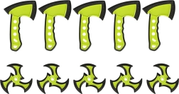 - doelwit, 5× shuriken, 5× bijl, standaard