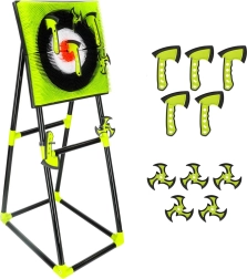 Ontdek actieve doelwitpret geïnspireerd door de ninja‑wereld – met siliconen bijlen en shuriken oefenen kinderen veilig hun gerichtheid en concentratie. Het stevige vrijstaande frame met standaard maakt snel opbouwen mogelijk en biedt handige opbergplekken voor de accessoires.