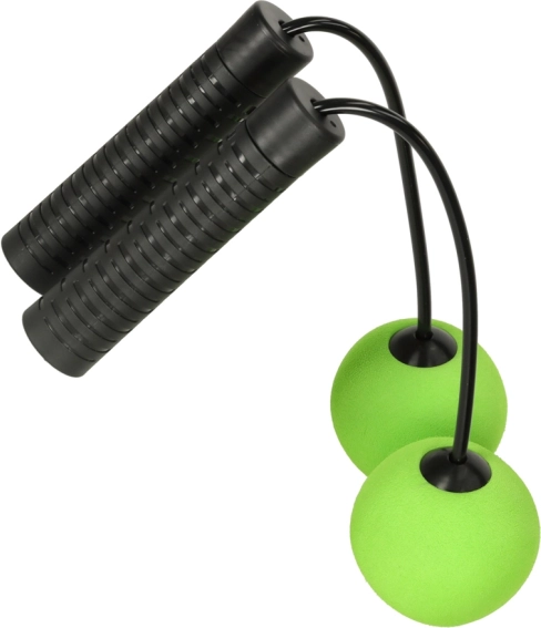 Train zonder lang touw – de balletjes aan korte koordjes simuleren de rotatie en minimaliseren het risico op struikelen. Perfect voor appartement, kantoor en sportschool.
