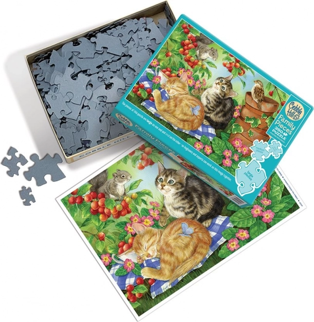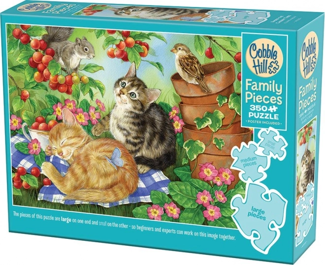 Familiepuzzel Onder de kersenboom van COBBLE HILL – 350 stukjes in 3 formaten, originele vormen, voorbeeld in de doos. Ideaal vermaak voor het hele gezin.