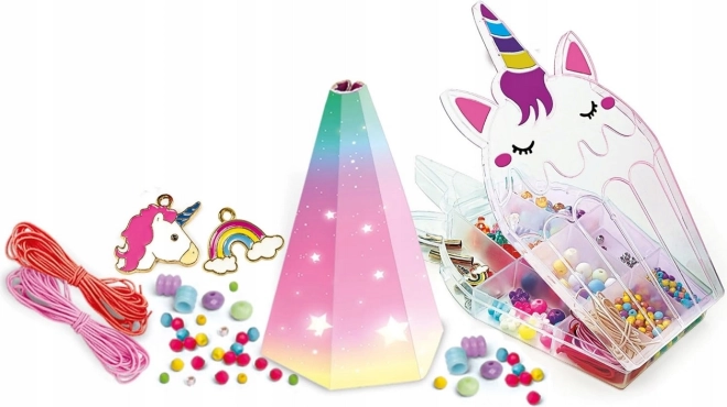 Een set voor jonge ontwerpsters die van kleur, glitter en de magische wereld van eenhoorns houden. Dankzij de elastische koordjes en veelzijdige kralen maak je eenvoudig originele armbanden voor jezelf en je vriendinnen. De eenhoorn- en regenboogbedeltjes geven elk sieraad een sprookjesachtige touch.