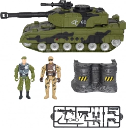 Geniet van een militaire set met licht- en geluidseffecten met een tank, soldatenfiguren en extra accessoires, ideaal voor avontuurlijke speelmomenten.