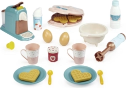 Maak de perfecte kinderontbijtjes met deze multifunctionele set die drie favoriete keukenapparaten in één combineert: koffiezetapparaat, wafelijzer en staafmixer. Dankzij de rijke uitrusting kunnen kinderen gemakkelijk het bereiden van drankjes en lekkernijen nadoen, hun fijne motoriek ontwikkelen en samenwerken leren.