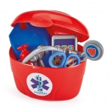 De set bevat een koffer en realistische accessoires zoals een stethoscoop, spuit, thermometer, schaar en andere elementen voor het onderzoeken van de patiënt. De lichte constructie met een gewicht van slechts 1,085 kg garandeert comfortabel verplaatsen door het huis en de kinderkamer.