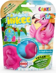Maak badderen leuker voor kinderen én jezelf met de speelse INKEE bruisballen in de vorm van een flamingo. In de verpakking vind je drie kleurrijke ballen (roze, paars, blauw) met een kauwgomgeur en verzorgende jojoba-olie. De samenstelling is vegan, zonder microplastics, gluten, SLS en paraffine en is ontworpen om het bad niet ongecontroleerd te verkleuren. Perfect voor een leuke, geurige en milde badervaring.