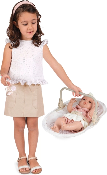 Deze multifunctionele 3-in-1 stoel en schommel voor poppen uit de Verona-collectie biedt kinderen realistisch speelplezier en tal van mogelijkheden om voor hun favoriete babypop te zorgen. De combinatie van lichtbeige en wit met stippen- of streepjespatroon, afgewerkt met subtiele biezen en strikapplicaties, creëert een tijdloze natuurlijke look geïnspireerd op Spaans design.