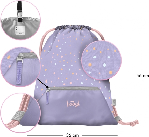 Lichte en duurzame BAAGL AIRY MAZLÍČCI schoolset voor kinderen vanaf groep 3, met een ergonomische rugzak, een ruime eenlaagse etui en een praktische gymsack. De rugzak weegt slechts 750 g, heeft ergonomisch gevormde rugpanelen met het AIRFLOW ERGO-systeem, magnetische sluiting, reflecterende elementen en is gemaakt van waterafstotend materiaal. Ideaal voor een lengte van 110–135 cm.