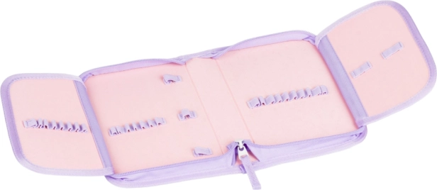De set bevat een eenlaagse etui met twee flapdelen (zonder inhoud) en een stevige gymsack met vak voor binnenschoenen of sportspullen. De gymsack heeft een karabijnhaak om aan de rugzak te bevestigen, is van afwasbaar materiaal en heeft een ondervak met rits. De hele set is uitgevoerd in het aantrekkelijke Mazlíčci-design waar kinderen dol op zullen zijn.