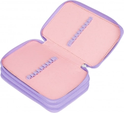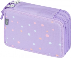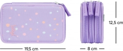 Doordachte elastieken zijn ontworpen om ook dikere kleurpotloden en stiften comfortabel te houden. De etui is gemaakt van duurzaam textiel en de speelse stippenprint in paarse tinten past perfect bij elke schoolset. Wordt geleverd zonder inhoud, zodat je hem precies naar wens kunt inrichten.