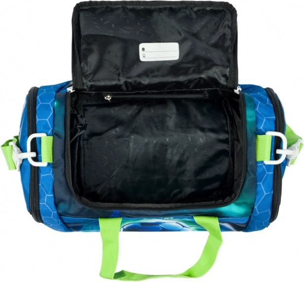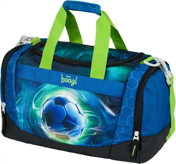 Lichte en praktische kindersporttas van BAAGL met voetbalbal-motief, ideaal voor clubjes en ook als handbagage. Biedt een ruim hoofdvak met brede klep, een apart schoenenvak, een afneembare verstelbare schouderriem en een verstevigde waterbestendige bodem. Voor de veiligheid van kinderen zijn er reflecterende elementen en betrouwbare YKK-ritsen.