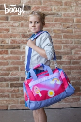 Lichte en stijlvolle kinder sporttas BAAGL met regenboogmotief, ideaal voor clubs, gym en als handbagage. Biedt een ruim hoofdvak met brede klep, een aparte schoenenvak, een afneembare verstelbare schouderriem en een verstevigde waterdichte bodem. Betrouwbare YKK-ritsen zorgen voor soepel openen en reflecterende elementen voor veiligheid ontbreken niet.