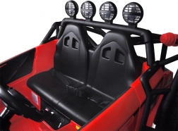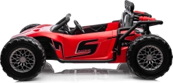 Deze tweezits elektrische buggy is een ideale keuze voor kleine avonturiers. Dankzij de aandrijving met 2 motoren (2× 24V/200W), de 24V/7Ah-accu en de vering voor en achter kan hij oneffenheden, gras en lichte hellingen aan. De soepele start zorgt voor wegrijden zonder schokken en de comfortabele zit met veiligheidsgordels zal kinderen én ouders bevallen.