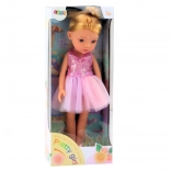 Deze pop met een hoogte van 33 cm is ideaal om mee te spelen én voor verzamelaars. Ze heeft lang, blond haar stijlvol opgestoken in een knot, passend bij de look van een echte ballerina. Ze draagt een roze, glinsterende jurk met een zwierige rok die prachtig schittert in het licht. Daarnaast heeft ze roze, glanzende schoentjes die perfect bij haar dansoutfit passen.