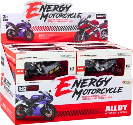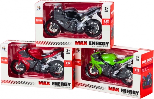 Een realistische sportmotor op schaal 1:12 voor zowel kinderen als verzamelaars. Biedt gedetailleerde afwerking, metalen onderdelen en een draaiend stuur. Dankzij de standaard staat hij stabiel op een plank. Verkrijgbaar in rood, groen of zwart. Geschikt vanaf 3 jaar, met CE-certificering en conform EN71.