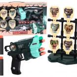 Schietset met dinosaurusmotief, ontworpen voor kinderen, die een unieke spelervaring biedt waarin plezier en ontwikkeling van vaardigheden worden gecombineerd. De set bevat een licht en ergonomisch pistool dat eenvoudig te hanteren is, ook voor kleinere handen.