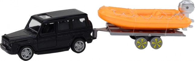 Deze unieke set biedt een combinatie van een terreinwagen en een boot, ontworpen voor jonge avonturiers die houden van zowel land als zee-ervaringen. De zwarte wagen is stijlvol en voorzien van aandrijving, terwijl de aanhanger het transport van de boot vergemakkelijkt, klaar voor elke waterexpeditie!