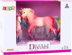 Betoverende set van twee roze eenhoorns – een volwassene en een veulen – voor magisch spel en als pronkstuk. Realistische details, een kleurrijke manen en staart, duurzame afwerking en CE-, EN71-certificering garanderen veilig speelplezier voor kinderen vanaf 3 jaar.