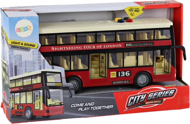 De stijlvolle rode dubbeldeksbus is ideaal voor kinderen die van stadsvoertuigen houden. Voorzien van een wrijvingsaandrijving, wat het bewegen vergemakkelijkt. Het kind hoeft de bus alleen maar te duwen om hem te laten rijden.