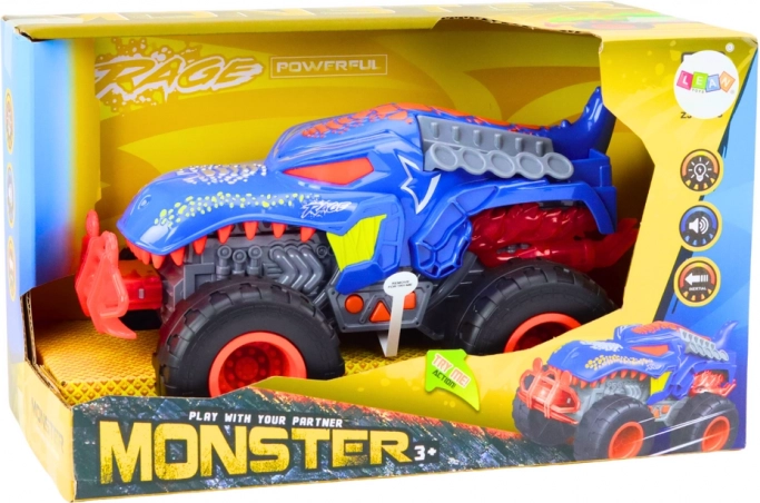 Terreinwagen Dinosaurus Velociraptor Lichten Geluiden Aandrijving Blauw