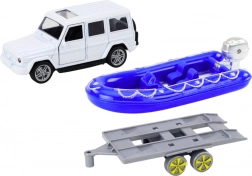 De auto heeft een trekaandrijving, waardoor deze over verschillende oppervlakken kan rijden, wat het speelplezier en de interactiviteit verhoogt. De aanhanger is bovendien speciaal ontworpen voor het vervoer van de boot, wat de speelmogelijkheden van de weg naar het water uitbreidt.