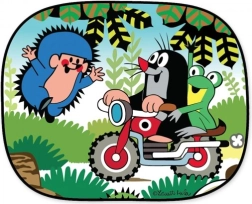 Schattige autozonneschermen met het motief KRTJEK beschermen kinderen en passagiers tegen fel zonlicht. Ze verminderen effectief de opwarming van het interieur, ontlasten de airconditioning en dankzij de zuignappen is installeren en verwijderen zo gebeurd.