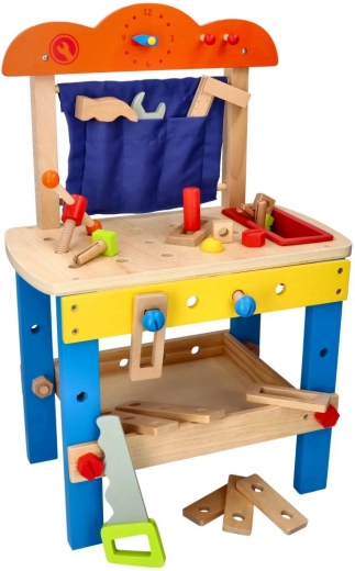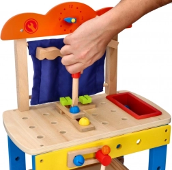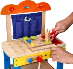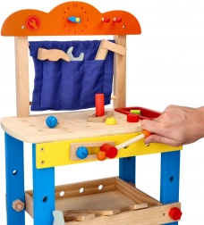 Deze kwalitatieve houten werkbank is ontworpen om kinderen veilig kennis te laten maken met de wereld van gereedschap. Kleurrijke elementen, functionele onderdelen zoals schroeven, moeren en tandwielen, en een praktische gereedschapsbak stimuleren natuurlijke nieuwsgierigheid en vaardigheidsontwikkeling.
