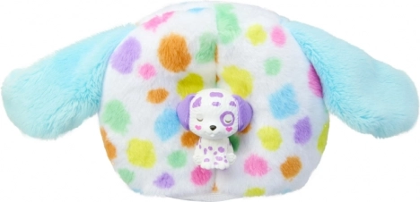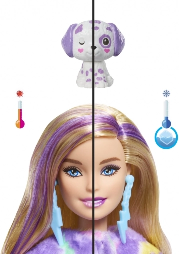 Unboxen was nog nooit zo leuk! In de kleurrijke koker wacht een BARBIE-pop met lange, regenboogkleurige haren, verstopt in een superzacht dierenpak – van konijntje en zebra tot pinguïn of dalmatiër. Na het uittrekken van het kostuum onthul je een gewrichts-pop die klaar is voor styling en fantasierijke verhalen. Door het kostuum om te keren ontstaat een fleece jasje en van de kap van het kostuum maak je eenvoudig een nestje voor het minidiertje.