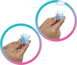 Binnenin vind je twee “ijsblokjes” met een rokje en schattige schoentjes, een rietje, een handtasje en een zacht diertje geïnspireerd op bubble tea. Met koud water onthul je de gezichtsdecoratie van de pop, warm water herstelt de oorspronkelijke look – de transformatie kan steeds worden herhaald. De serie biedt meerdere thema’s, spaar ze allemaal!