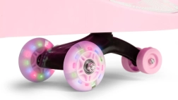 Rubberen wielen zorgen voor een stille en soepele rit en krassen de vloer niet, waardoor de loopfiets ideaal is voor zowel binnen als de tuin. Geïntegreerde LED-diodes in de wielen lichten op tijdens het rijden en verhogen de zichtbaarheid in het schemerlicht, voor meer plezier én veiligheid.