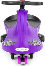 Leuke wiggle car-loopauto van het merk ECOTOYS voor kinderen vanaf 3 jaar. Aandrijving door het stuur te bewegen, zonder trappen, wat de coördinatie en balans bevordert. Lichte en duurzame constructie, stille rubberen wielen die de vloer niet krassen en LED-verlichting in de wielen voor nog meer rijplezier. Ergonomische zitting, antislip voetsteunen en stuur met 360° rotatie zorgen voor veilig en comfortabel plezier binnen en buiten.