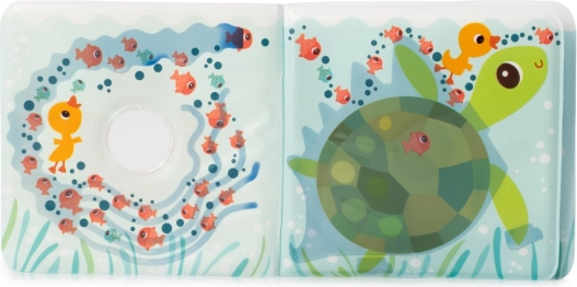 De praktische opening in het midden maakt vasthouden met kleine handjes eenvoudig. Zachte, waterbestendige pagina’s zijn geschikt voor baby’s vanaf de geboorte.