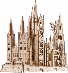 Betreed de magische wereld met de natuurgetrouwe houten replica van kasteel Zweinstein van Ugears. Dit gedetailleerde 3D-model met 340 onderdelen biedt gemiddelde moeilijkheidsgraad, een draaibare trap en bewegende drakenvleugels. De hoogwaardige houten onderdelen passen precies zonder lijm en het bouwen stimuleert fijne motoriek, geduld en ruimtelijk inzicht.