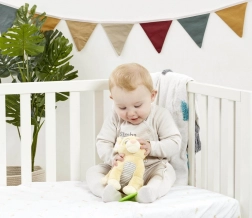 Een licht en zacht pluchen speeltje, ideaal voor wieg of kinderwagen. Een geweldige metgezel om mee te slapen en te spelen.