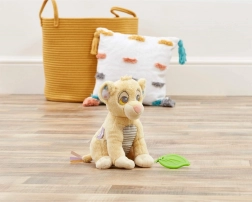 Maak kennis met het kleine leeuwtje Simba – een superzachte vriend voor elke dag. Dit pluchen speeltje combineert rustgevende zachtheid met slimme details voor zintuiglijke ontdekking: een getextureerde buik, zacht afgewerkte oortjes en een bladvormige bijtring die verlichting biedt bij doorkomende tandjes.