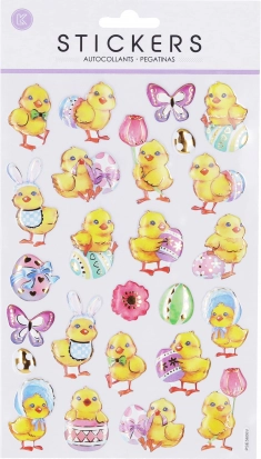 Stickers met het motief van paaskuikentjes brengen de betovering van het lentefeest naar je persoonlijke spullen.