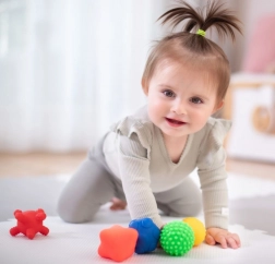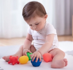 Elke bal heeft een unieke oppervlakte die de tastzin stimuleert en kinderen motiveert om te ontdekken, te knijpen en te grijpen.