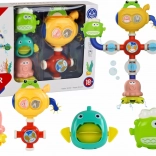 Maak het baden leuker voor kinderen met een interactief badspeeltje – een robot met zuignappen. Giet water in de kop van de robot en zie hoe de schoepen gaan draaien, fonteintjes beginnen te spuiten en de stroom verandert dankzij drie bedieningsventielen. Het speeltje stimuleert de fijne motoriek, het logisch denken en ondersteunt de zintuiglijke waarneming. Eenvoudig te bevestigen op tegels of in het bad dankzij de sterke zuignappen.