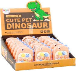 De draagbare Whack a Mole-speelgoedset valt op door het vrolijke ontwerp van een oranje dinosaurus en de eenvoudige bediening. Hij is bedoeld voor de allerkleinsten, die spelenderwijs hun aandacht, reflexen en coördinatie verbeteren. De belangrijkste taak is zo snel mogelijk op de knoppen te drukken die willekeurig op het oppervlak van het speelgoed verschijnen.