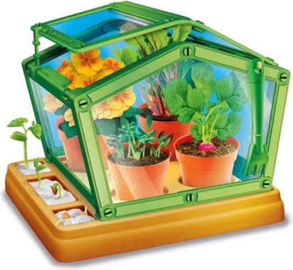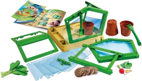 Deze educatieve set brengt kinderen op een eenvoudige en leuke manier de basis van de botanica bij. De transparante kas met een verstelbaar dak helpt de vochtigheid en temperatuur te reguleren, perfect voor de eerste kweekexperimenten thuis.