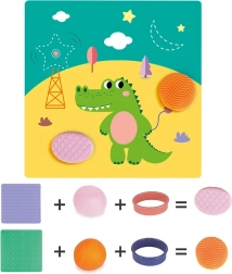 Bonte, getextureerde stukjes stimuleren de verbeeldingskracht van kinderen.