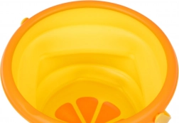 De bodem met citruspartjes en de vrolijke geel-oranje kleuren nodigen kinderen uit om te spelen op het strand en in de zandbak.