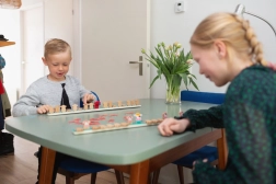 Dit slimme gezelschapsspel voor kinderen vanaf 6 jaar werkt op basis van vragen stellen en mogelijkheden uitsluiten. Speel “Wie ben ik?” in koeienstijl – heeft de koe van je tegenstander een hoed of een strik? Is het antwoord nee, draai dan de niet-passende koeien om en ga door tot de juiste overblijft. Degene die als eerste precies de koe van de tegenstander raadt, wint.