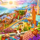 Puzzle TREFL Premium Plus Tea Time – bezoek aan Santorini, 1000 stukjes