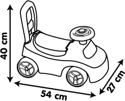 De veiligheid wordt gewaarborgd door kantelbeveiliging tegen omkiepen voor- en achteraan, stabiele antislip wielen en een stevige constructie van hoogwaardige kunststof. Kinderen zullen de echte stuur met claxon geweldig vinden en ouders waarderen het gemakkelijke gebruik en onderhoud.