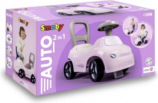 De ergonomische rugleuning met handgreep helpt bij de eerste stapjes; later stapt het kind eenvoudig over op zelfstandig rijden.