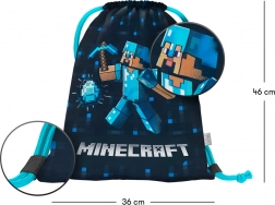 Praktische zak voor schoenen en kleine spullen met MINECRAFT-motief. Biedt een stevig, afwasbaar materiaal, comfortabel dragen op de rug dankzij stevige koorden en een karabijnhaak voor bevestiging aan de schooltas.